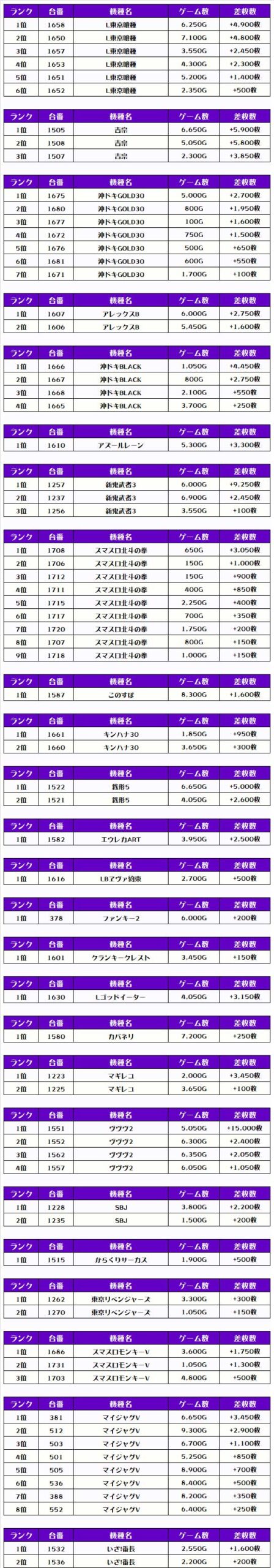 それでは、この日の【機種別差枚ランキング】を見ていきましょう❗️