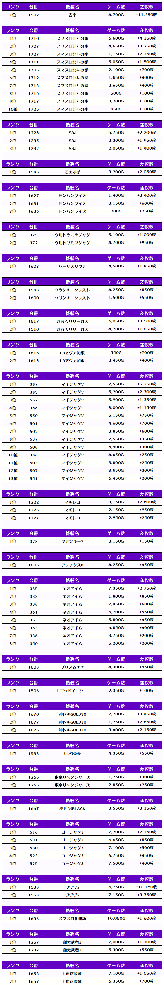 それでは、この日の【機種別差枚ランキング】を見ていきましょう❗️