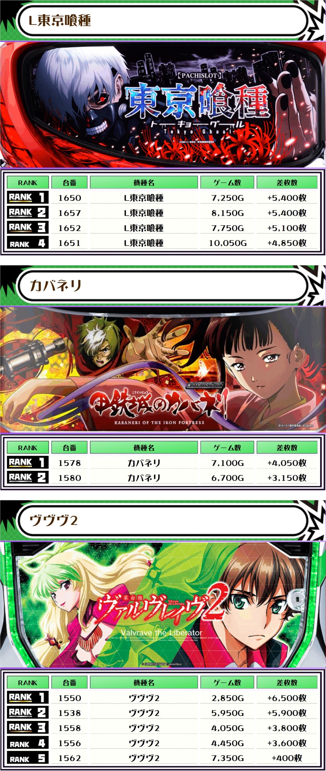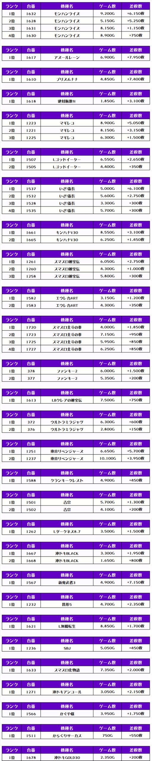 それでは、この日の【機種別差枚ランキング】を見ていきましょう❗️