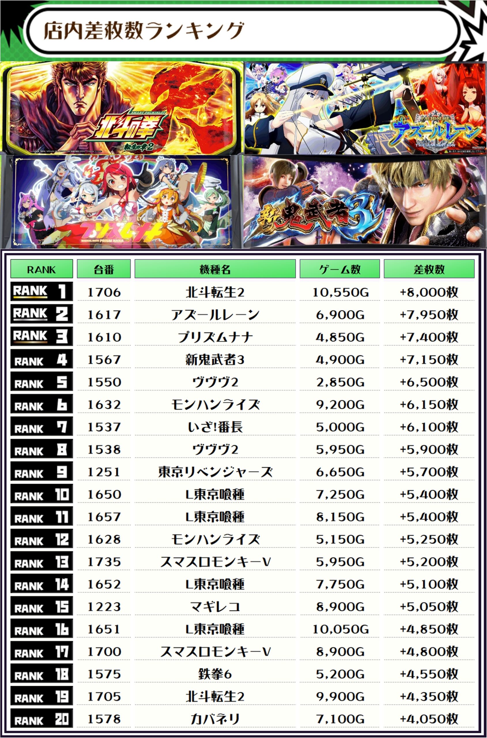そして、全体の差枚ランキングです🌟