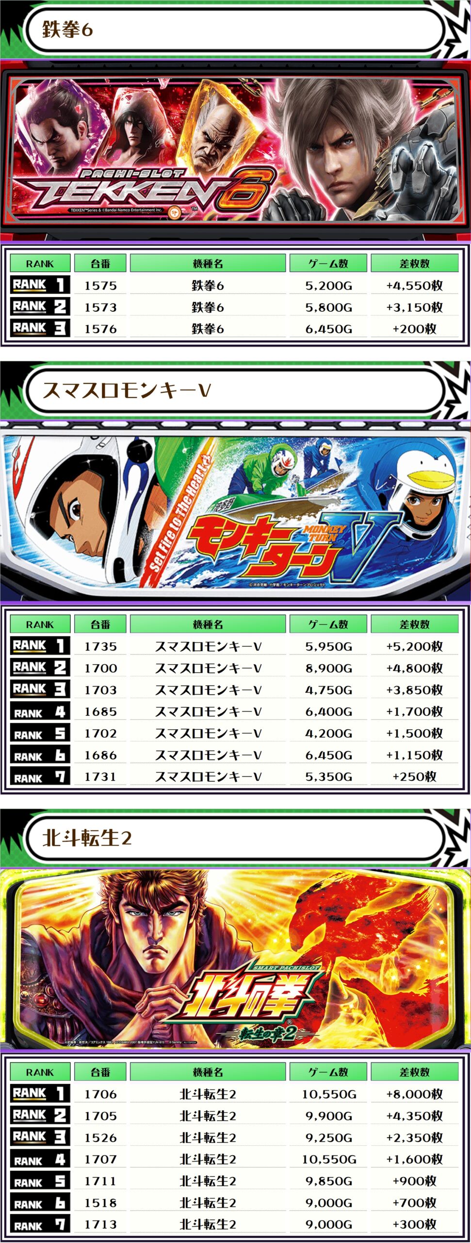 特に新台の鉄拳6・北斗転生2は早速その実力を見せくれましたね😊