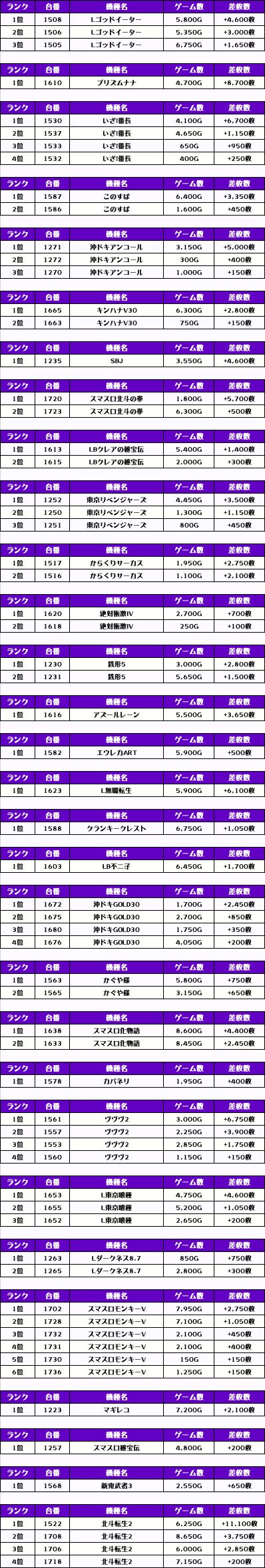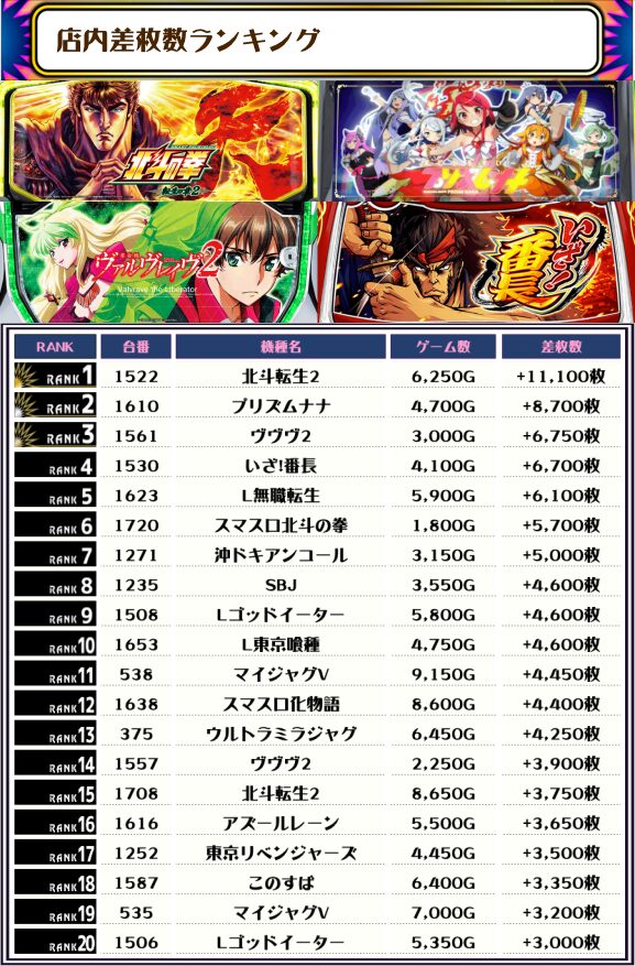2位には【プリズムナナ・1610番台】の+8,700枚、3位には【ヴヴヴ2・1561番台】の+6,750枚がランクインっ🏆🏆🏆🏆