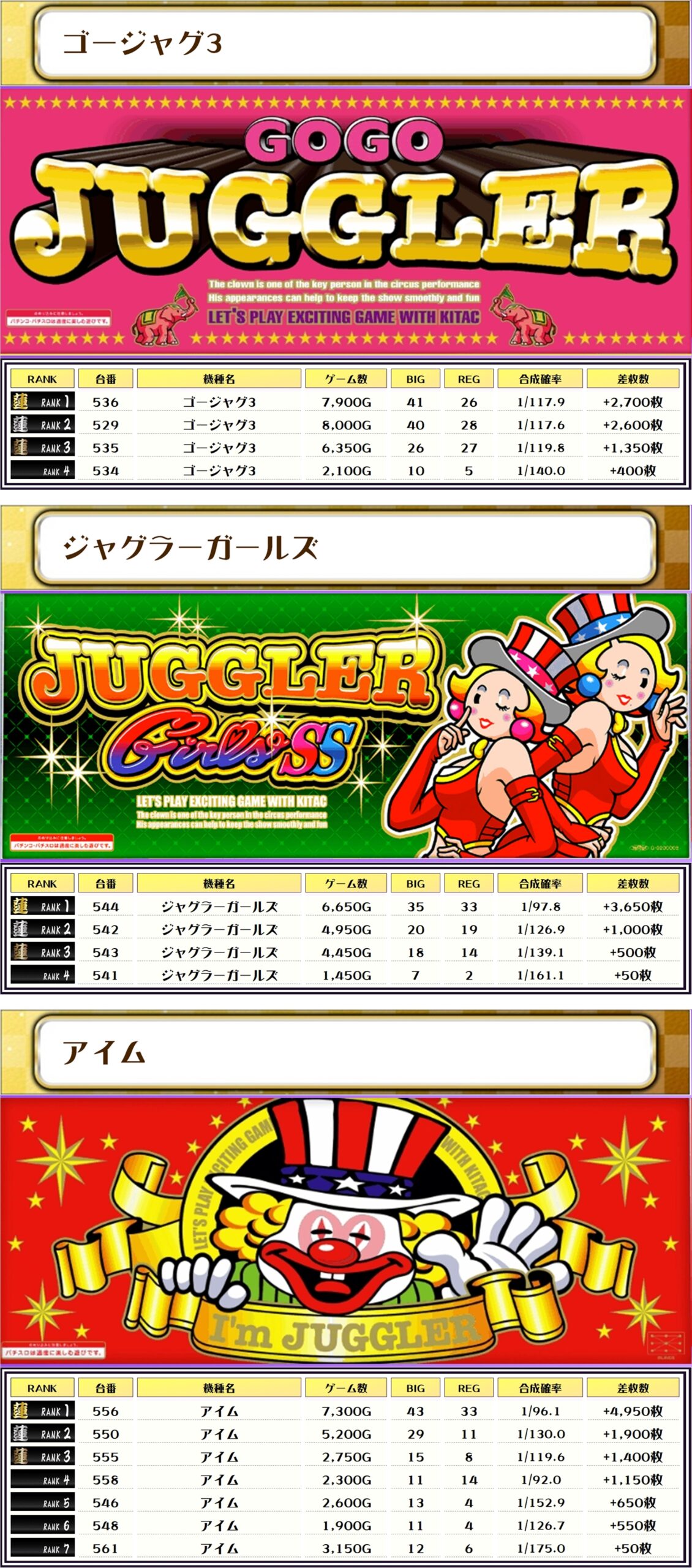 TOPはL東京喰種、2位は転スラとスマスロでしたが、3位以降に多数のジャグラーシリーズがランクイン❗️