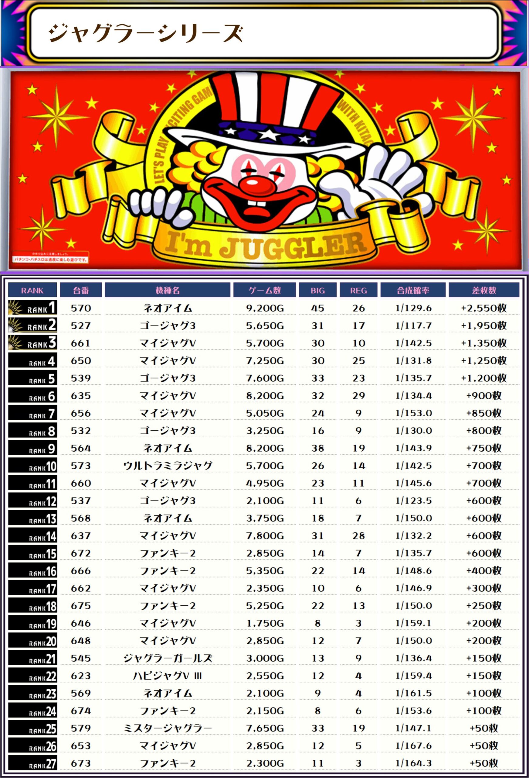 続いては【店内全台の差枚ランキング】をご覧ください!