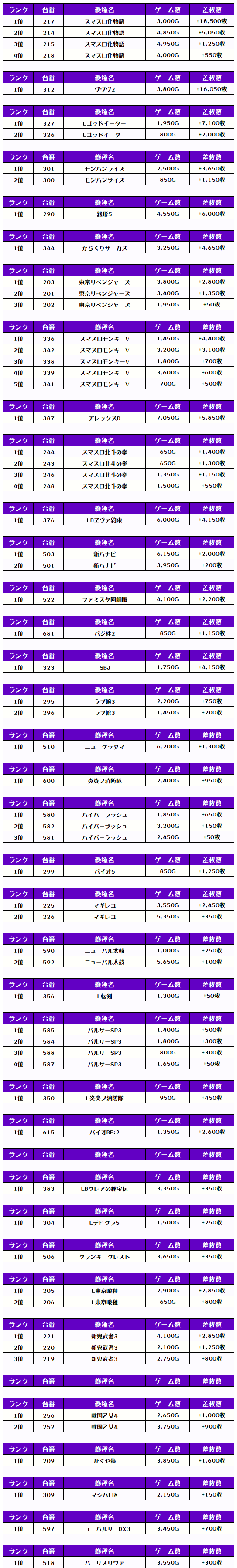 続く2位には【ヴヴヴ2・312番台】の+16,050枚、そして3位には【ボンバーガール・696番台】の+7,600枚がランクインしていますっ👍