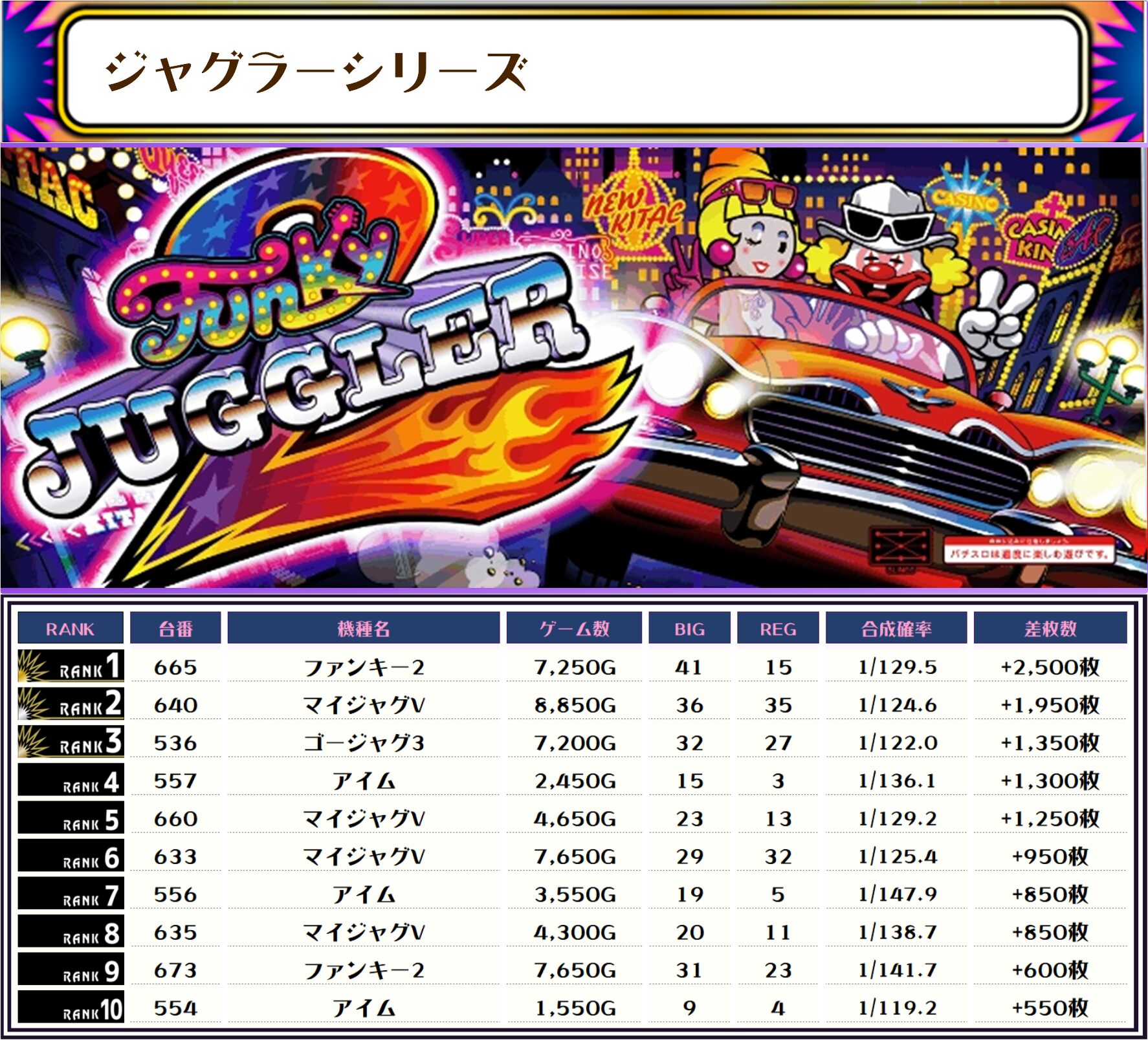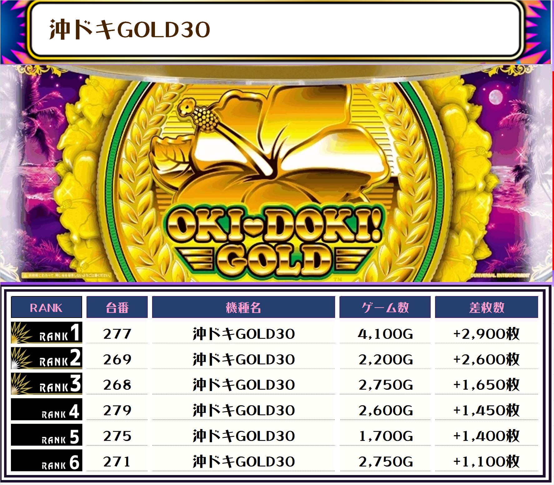 続いては【店内全台の差枚ランキング】をご覧ください!