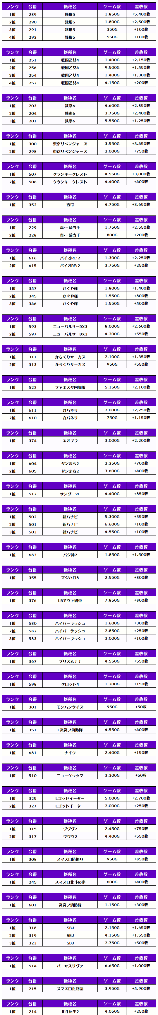 それでは、この日の【機種別差枚ランキング】を見ていきましょう❗️