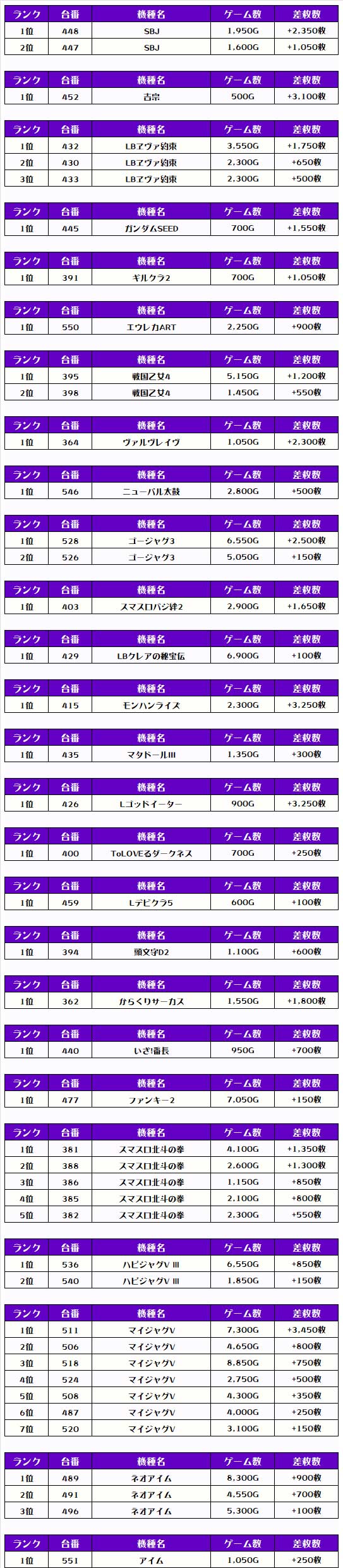 また、ピックアップした他の機種は稼働が高かったので、優秀台が多かったことは間違いないでしょうな💪