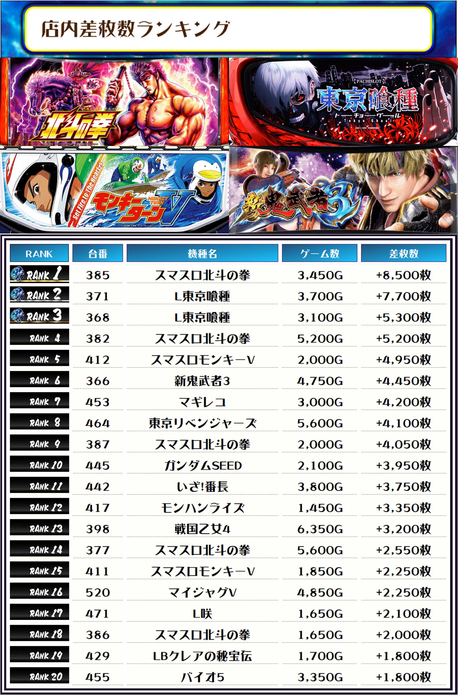 それでは早速、この日の機種別差枚ランキングをお伝えしていきましょう❗️