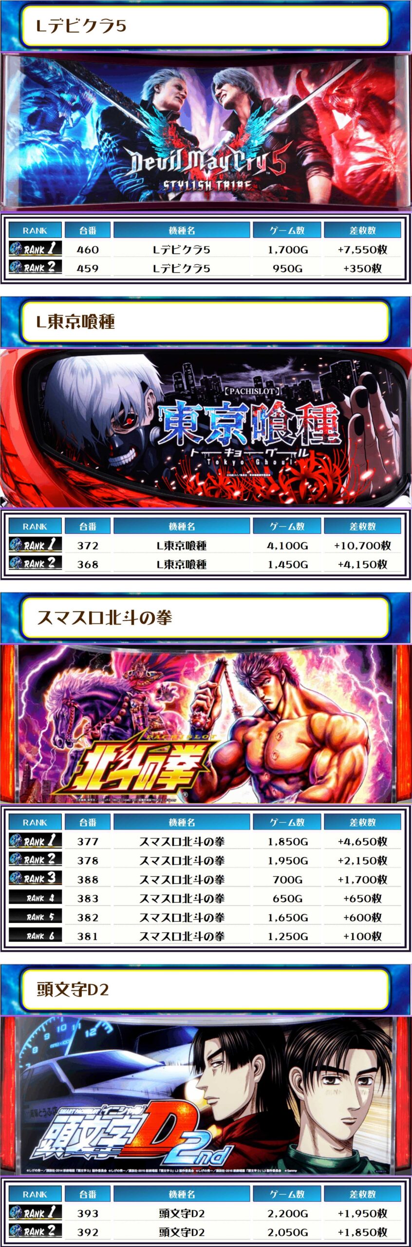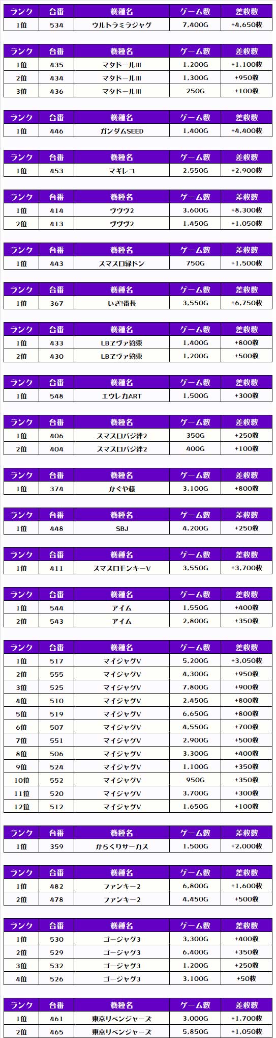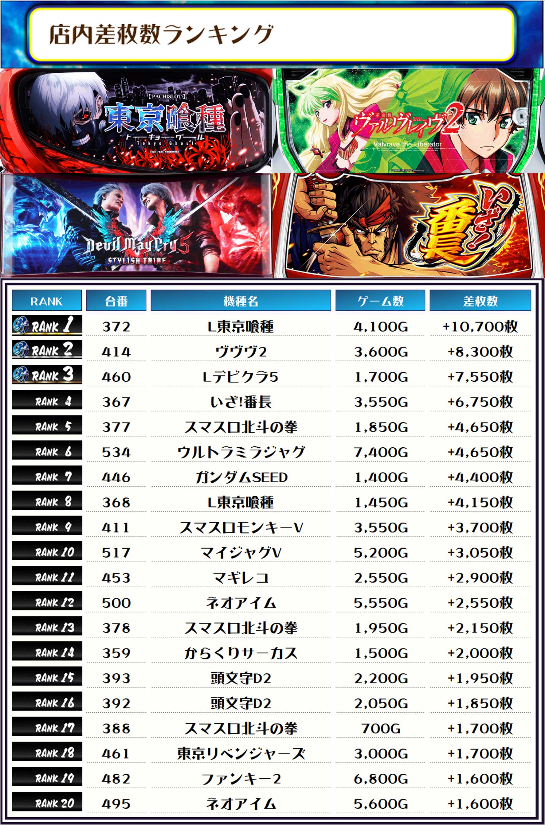 続く2位には【ヴヴヴ2・414番台】の+8,300枚、そして3位には【Lデビクラ5・460番台】の+7,550枚がランクインですっ❗️