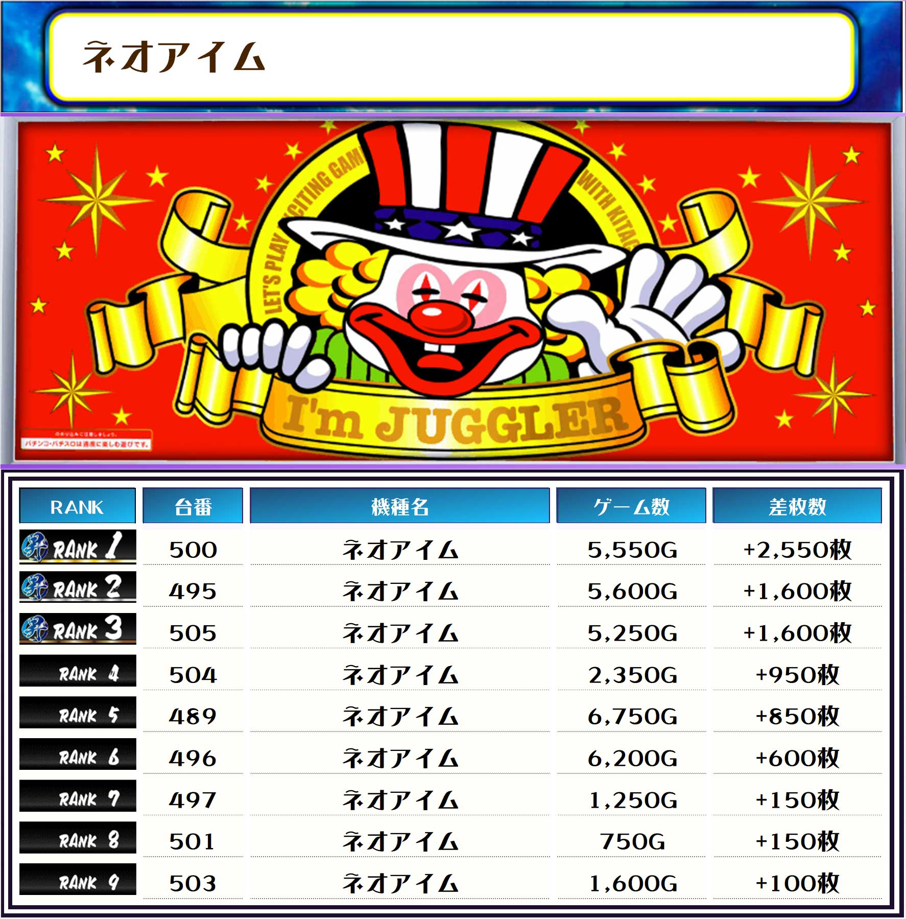 最後は、この日の店内差枚ランキングでっす❗️