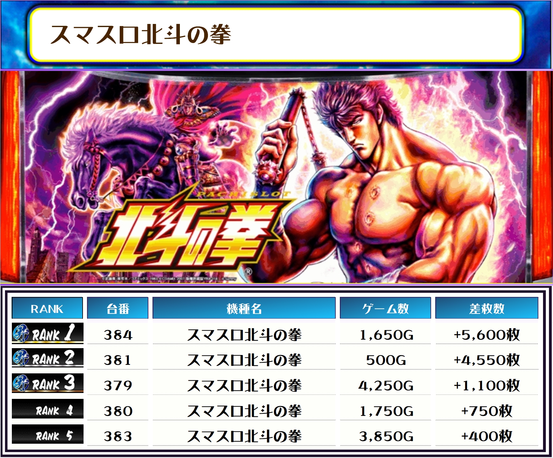 おすすめ機種の北斗シリーズから多くの優秀台が確認できました👀
