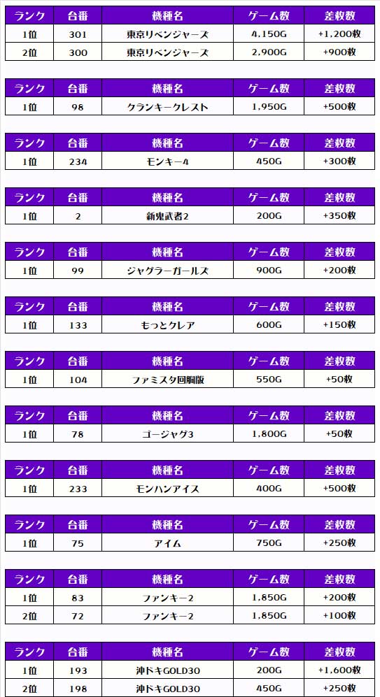 その他の機種の差枚はコチラ❗️