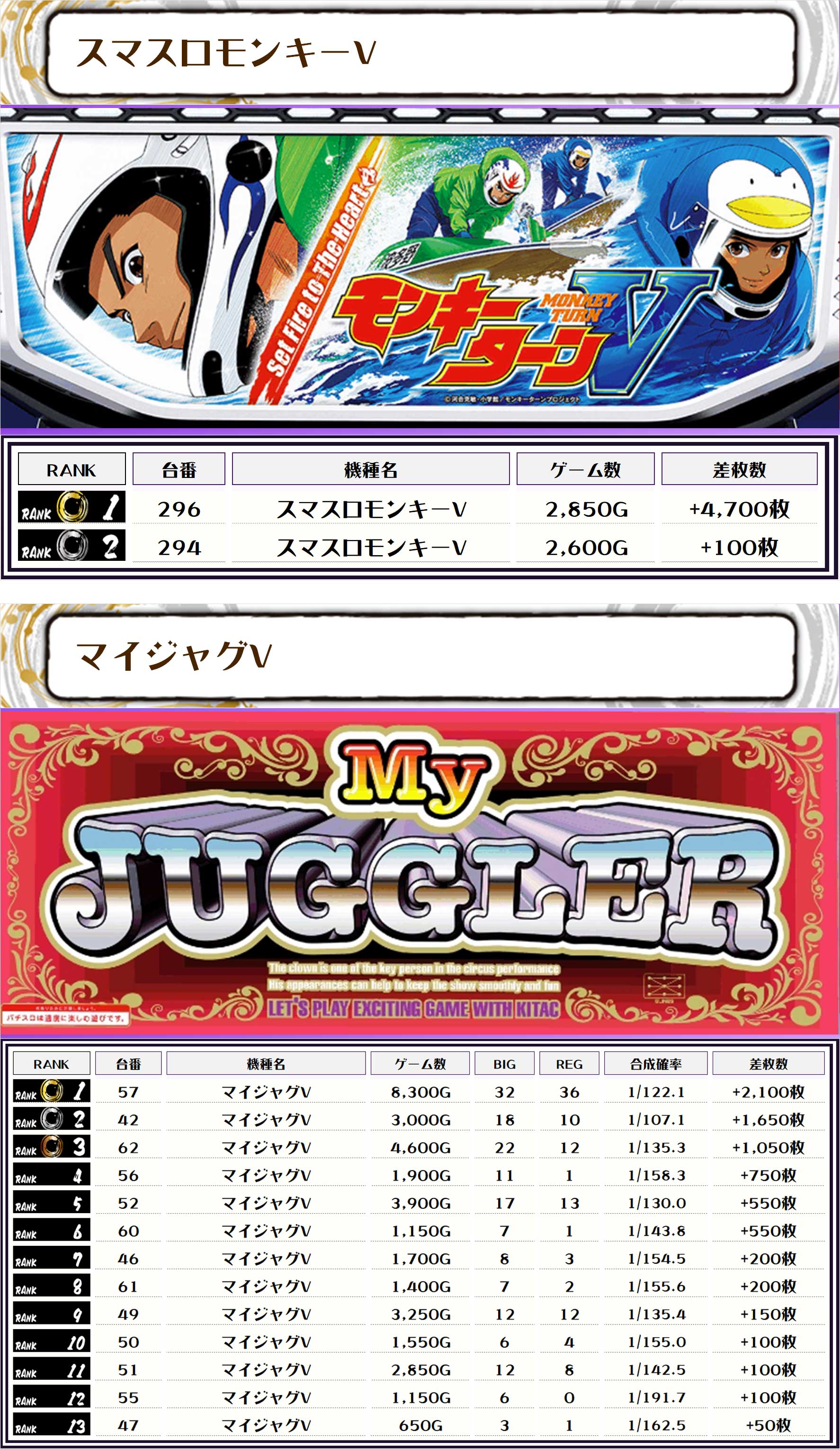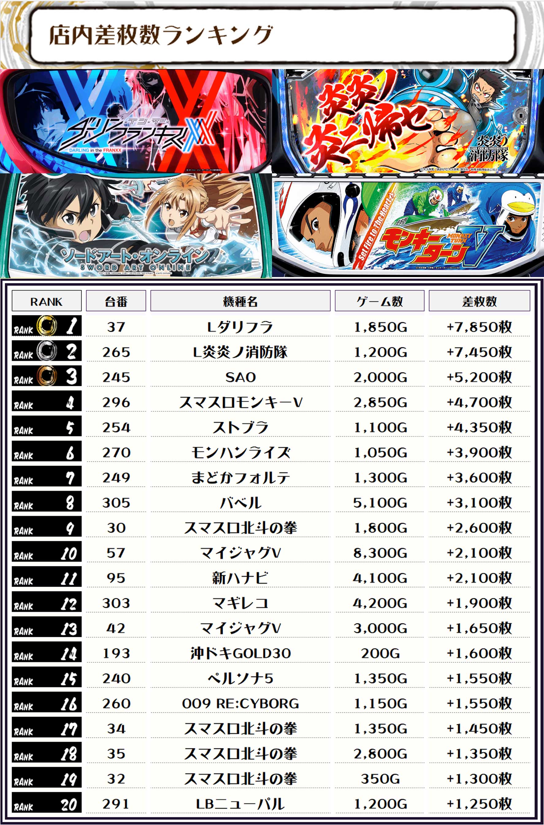 それでは早速【機種別差枚ランキング】をチェックしていきましょう🙆‍♀️