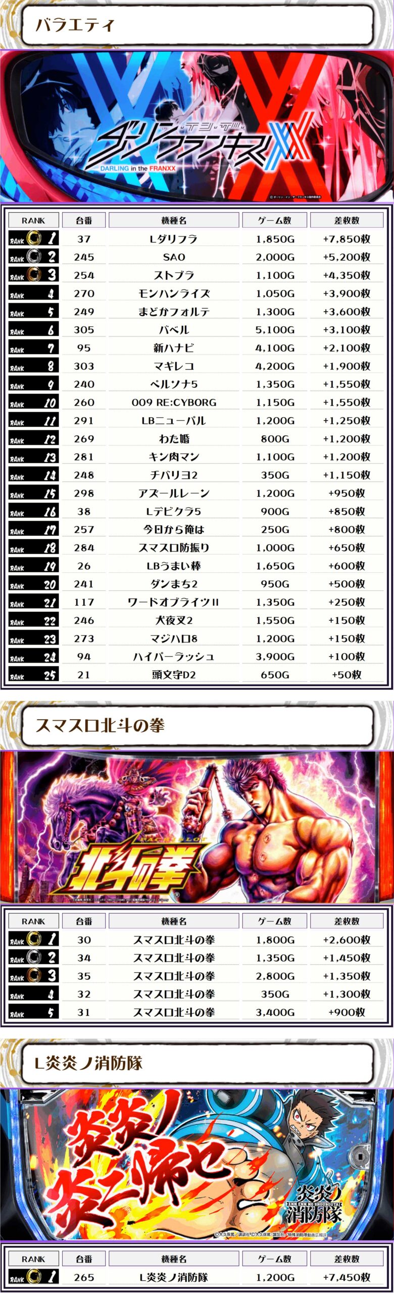 特にバラエティコーナーの結果は凄まじいモノとなりましたね👍個人的には優秀台が並んでいる箇所が多かったような🤔