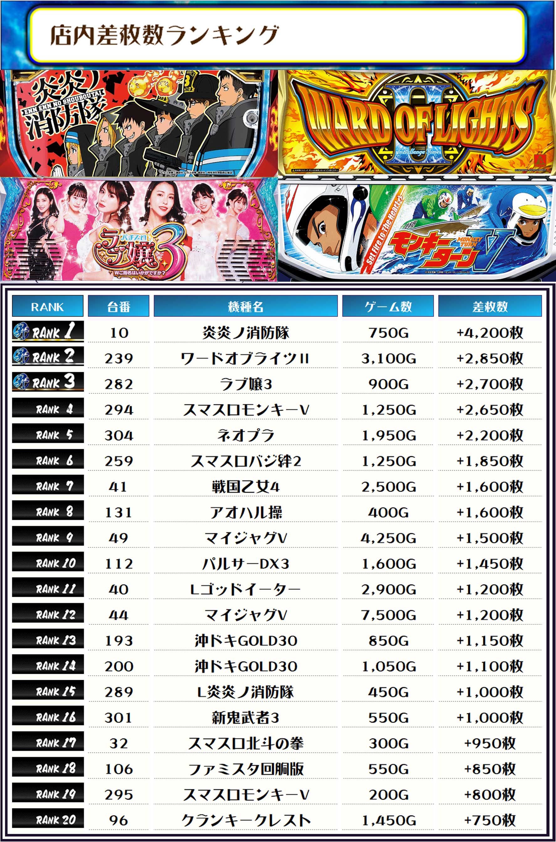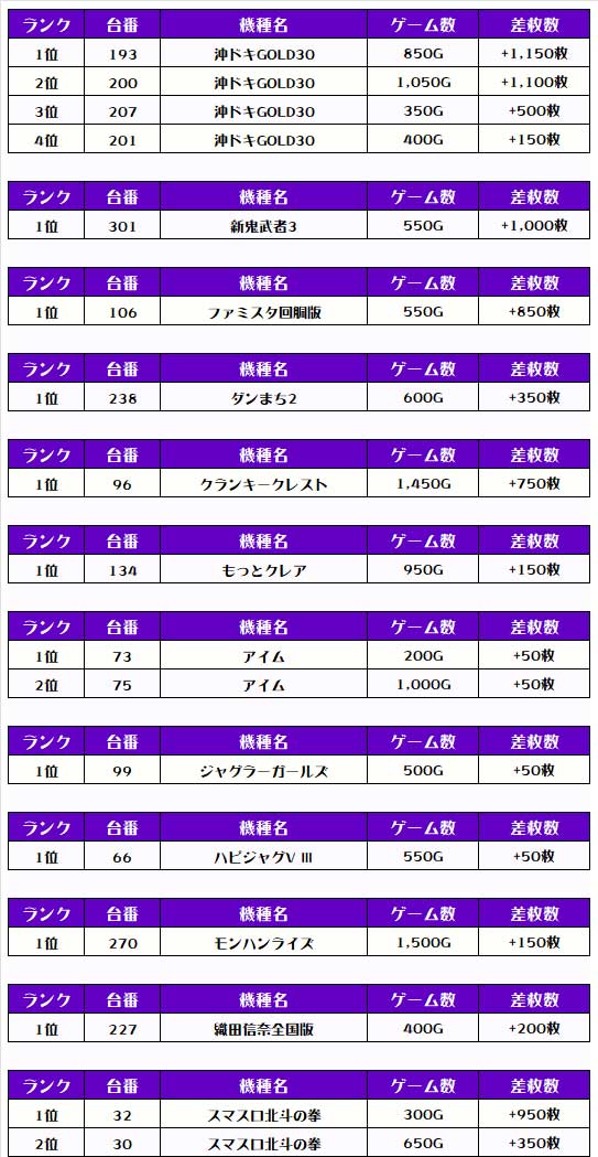 2位には【ワードオブライツⅡ・239番台】の+2,850枚、そして3位には【ラブ嬢3・282番台】の+2,700枚がランクインしましたっ📷