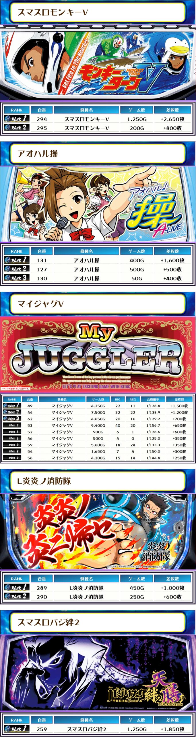この日の全体差枚トップは【炎炎ノ消防隊・10番台】で+4,200枚っ