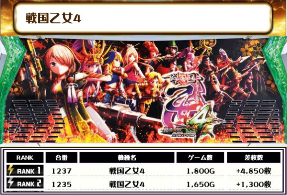 ということで、この日の全体差枚トップは【戦国乙女4・1237番台】で+4,850枚‼️