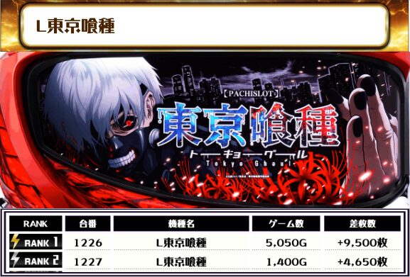 2位には【L東京喰種・738番台】の+9,500枚、そして3位には【GI優駿倶楽部黄金・1637番台】の+5,950枚がランクインっ💥💥💥💥💥