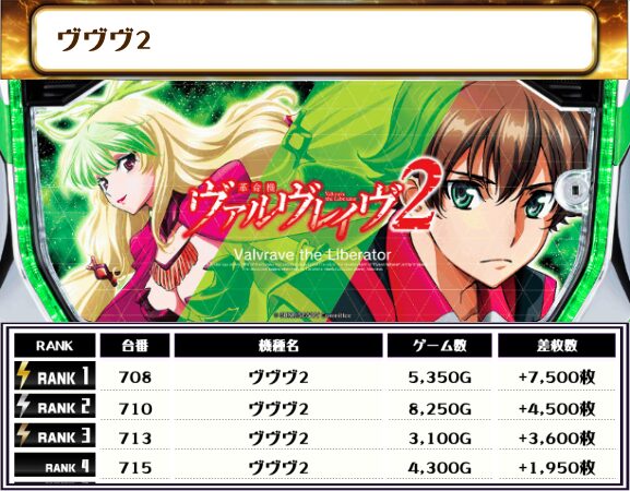 ということで、この日の全体差枚トップは【ヴヴヴ2・708番台】で+7,500枚‼️
