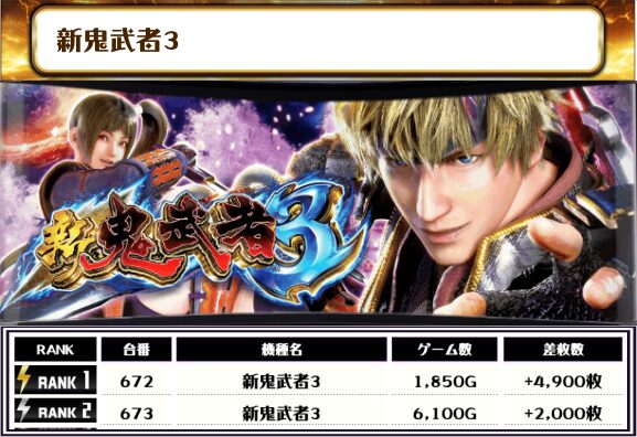 2位には【スマスロ防振り・660番台】の+4,950枚、そして3位には【新鬼武者3・672番台】の+4,900枚がランクインっ💥💥💥💥💥