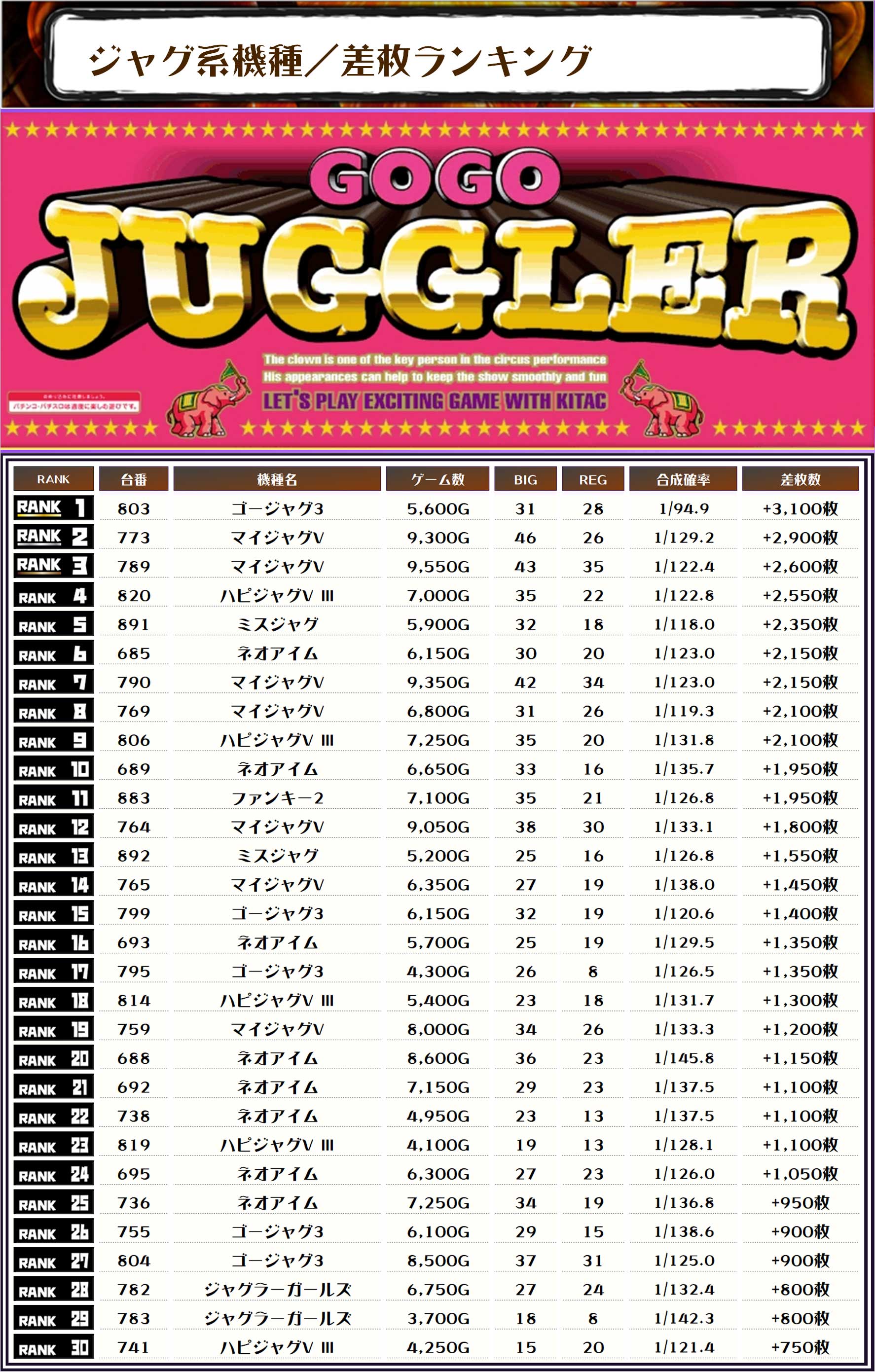 今回もジャグ系は様々な機種に優秀台が出現しましたねぇ~🔎