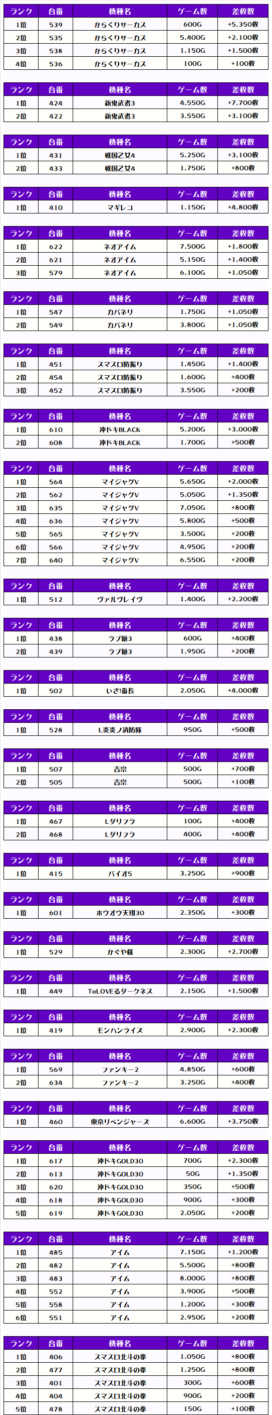 2位には【からくりサーカス・539番台】の+5,350枚、3位には【マギレコ・410番台】の+4,800枚がランクインっ🏆🏆🏆🏆
