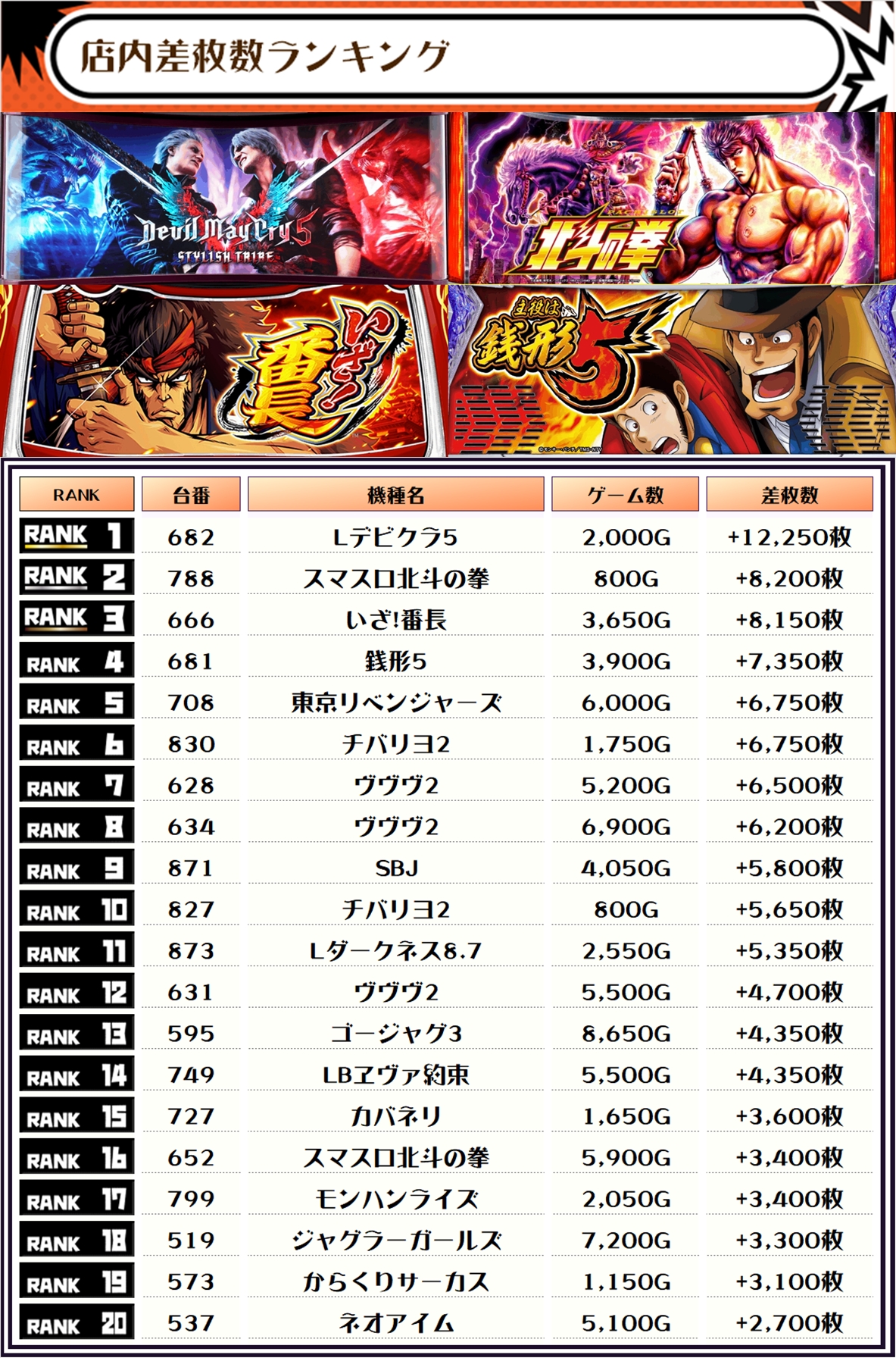 2位には【スマスロ北斗の拳・788番台】の+8,200枚、3位は【いざ!番長・666番台】の8,150枚がランクインっ🏆🏆🏆🏆