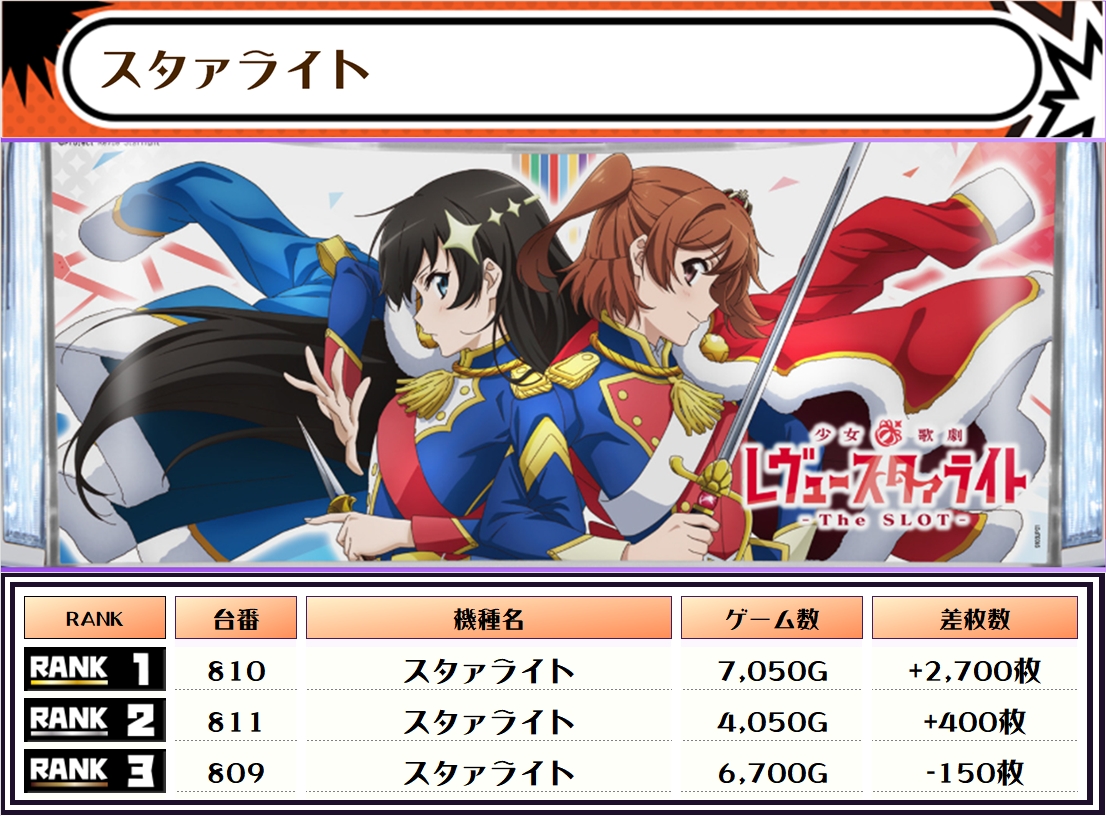 スタァライトは稼働も高かったので、皆さんも何か気付いていたのかもしれないですね🤔 ネオアイムはもう少し回されていたら、という台が多かったのが残念な気がします🤡💦