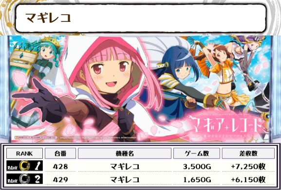 2位には【ヴヴヴ2・460番台】の+7,700枚、3位には【マギレコ・428番台】の7,250枚がランクインっ🏆🏆🏆🏆