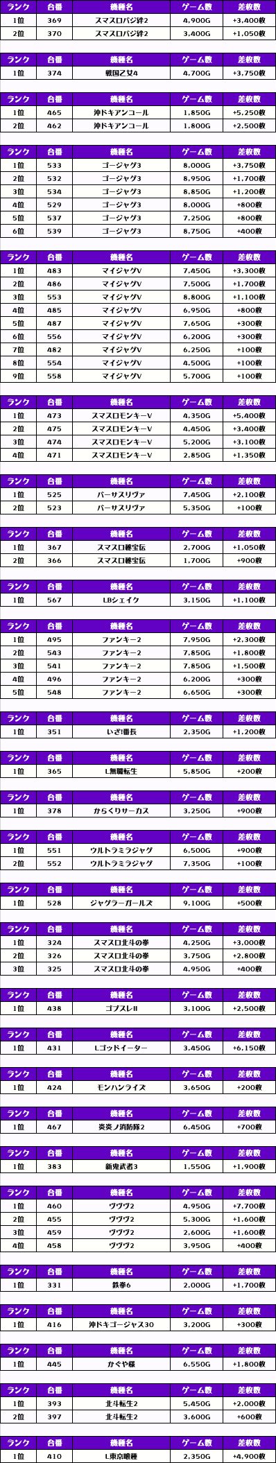 また、この日のパチスロ全体の差枚ランキングがこちら❗️