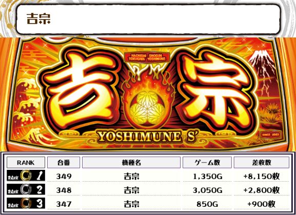 この日、全体の差枚トップに輝いたのは【吉宗・349番台】の+8,150枚‼️👑👑👑