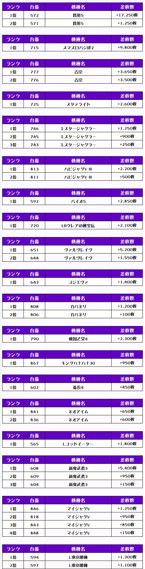 その他の機種の差枚はコチラです‼️