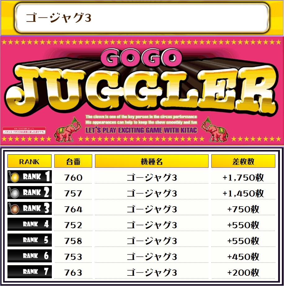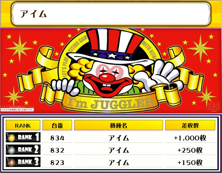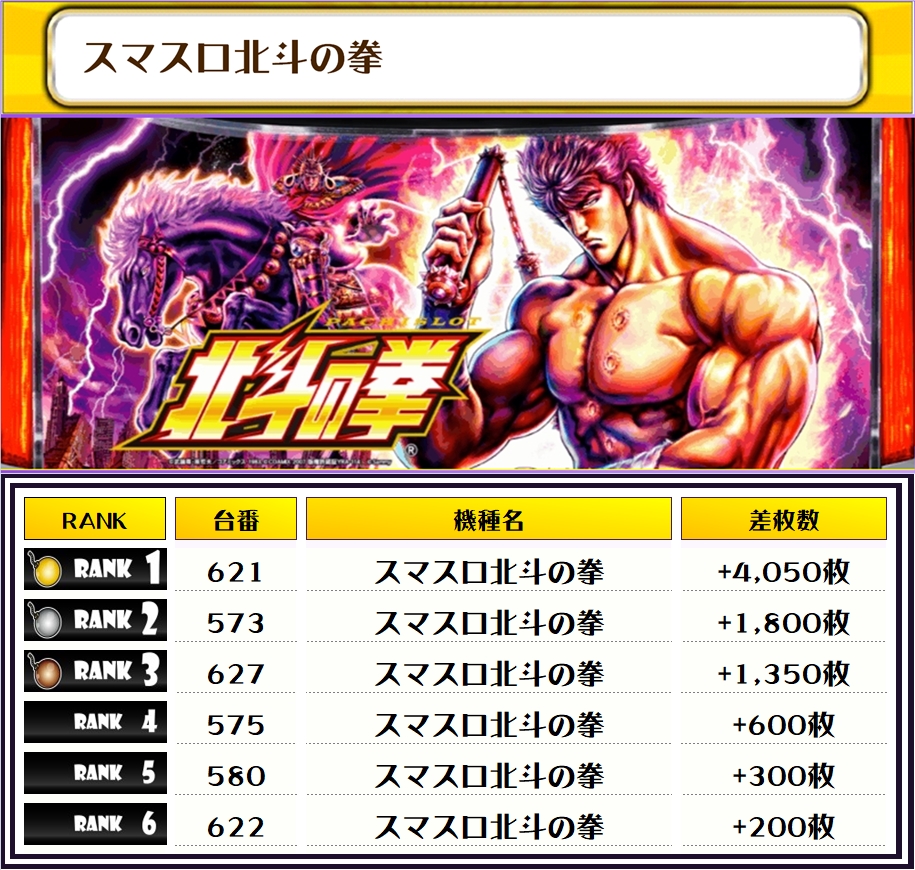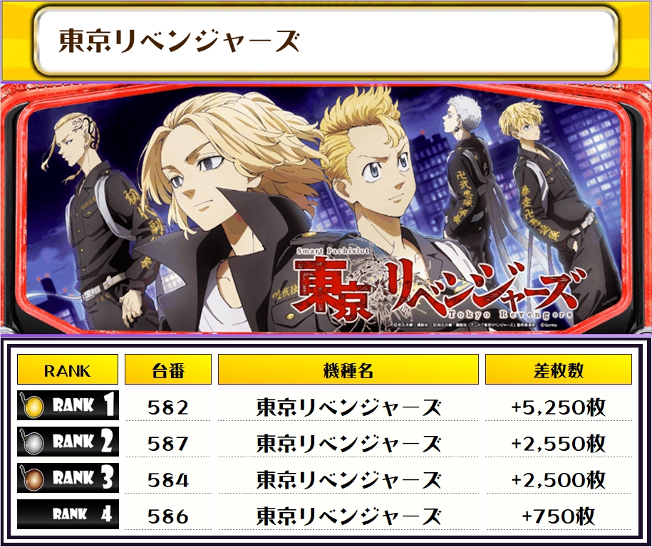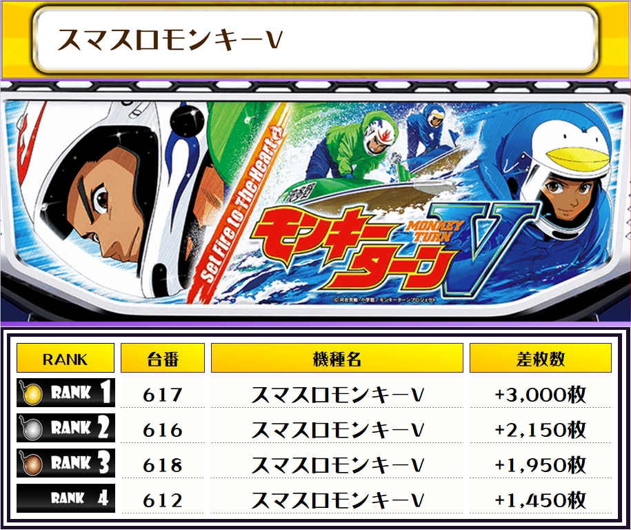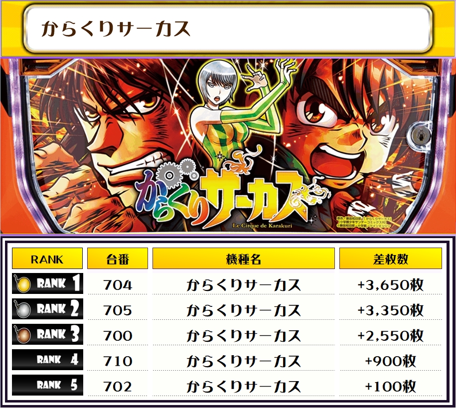 それでは、この日の店内差枚ランキングを見ていただきましょう❗️