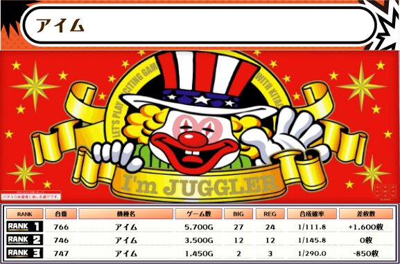 109名(抽選66名、一般43名)/271台(46枚スロ)