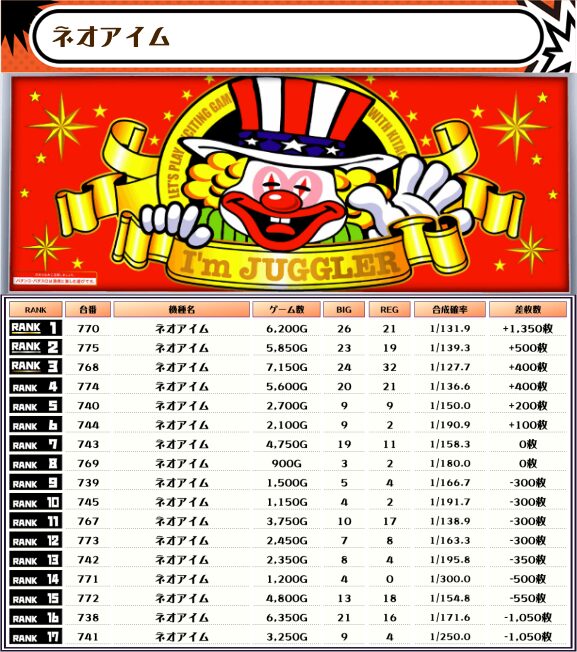 次に【機種別差枚ランキング】をチェックしていきましょう🙆♀️