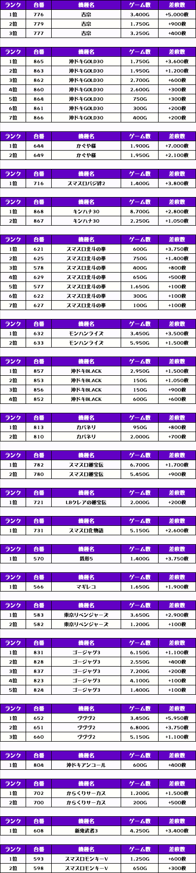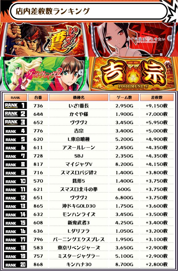 2位には【かぐや様・644番台】の+7,000枚、3位には【ヴヴヴ2・652番台】の5,950枚がランクインっ🏆🏆🏆🏆