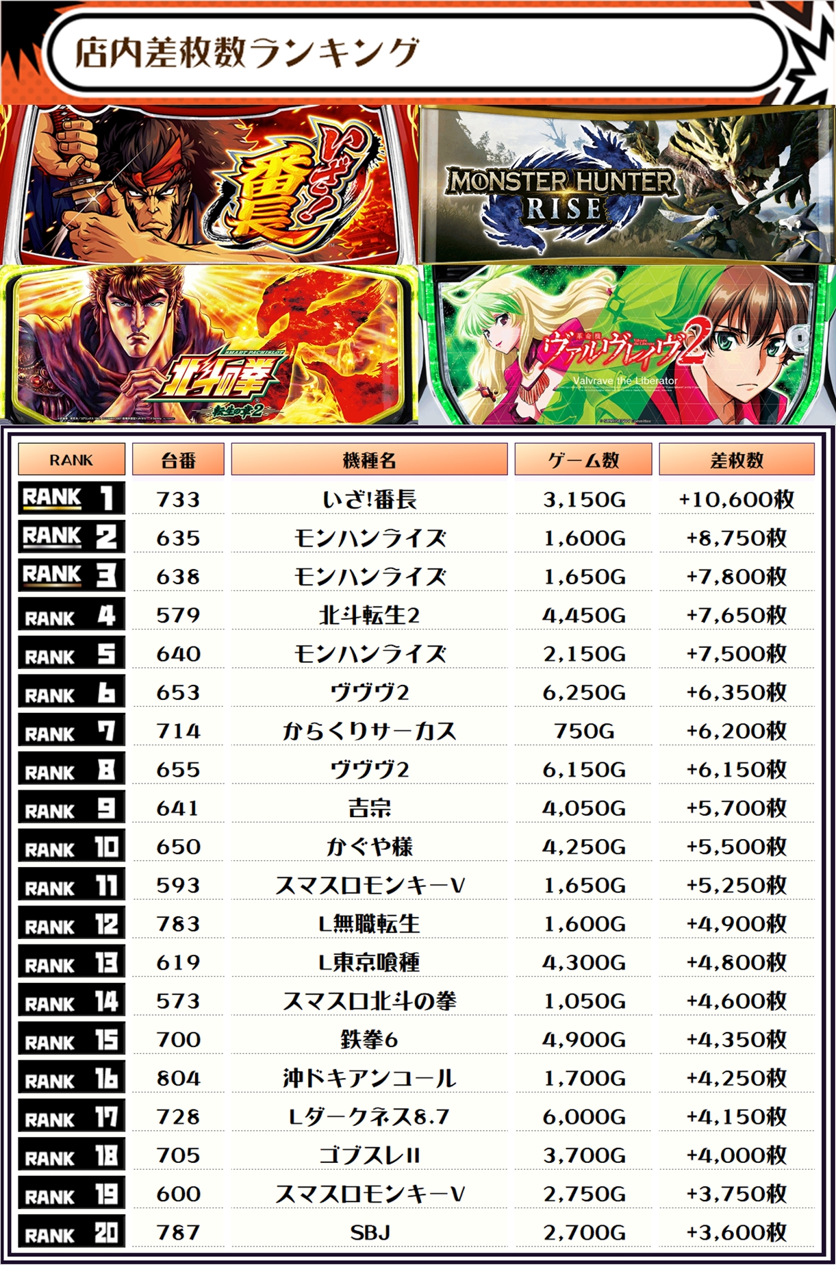 ランキングもほぼ4000枚オーバーで埋め尽くされ、店内はかなりの盛り上がりを見せてくれました📷