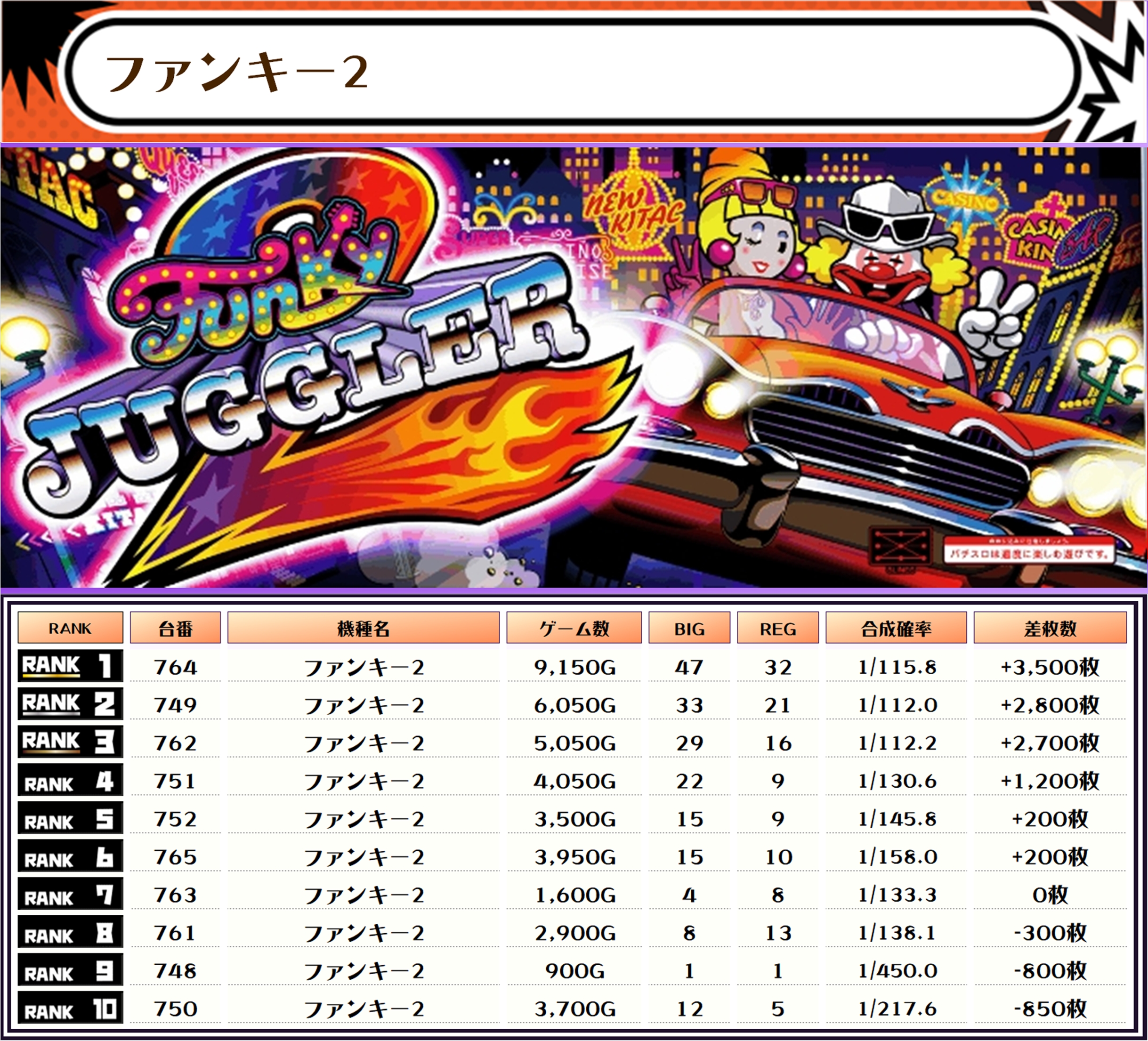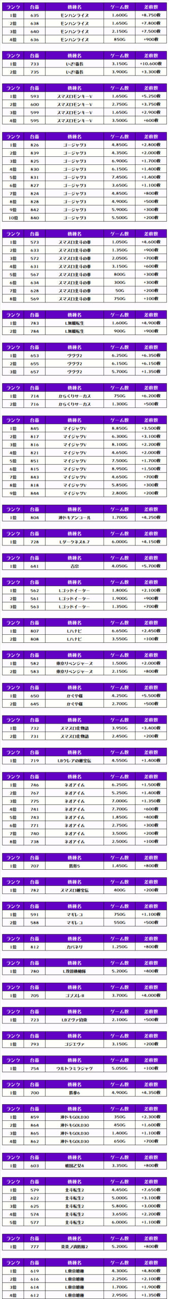 今回、ピックアップしたのは稼働が高く、優秀台が多かったと思われる機種になります~👍