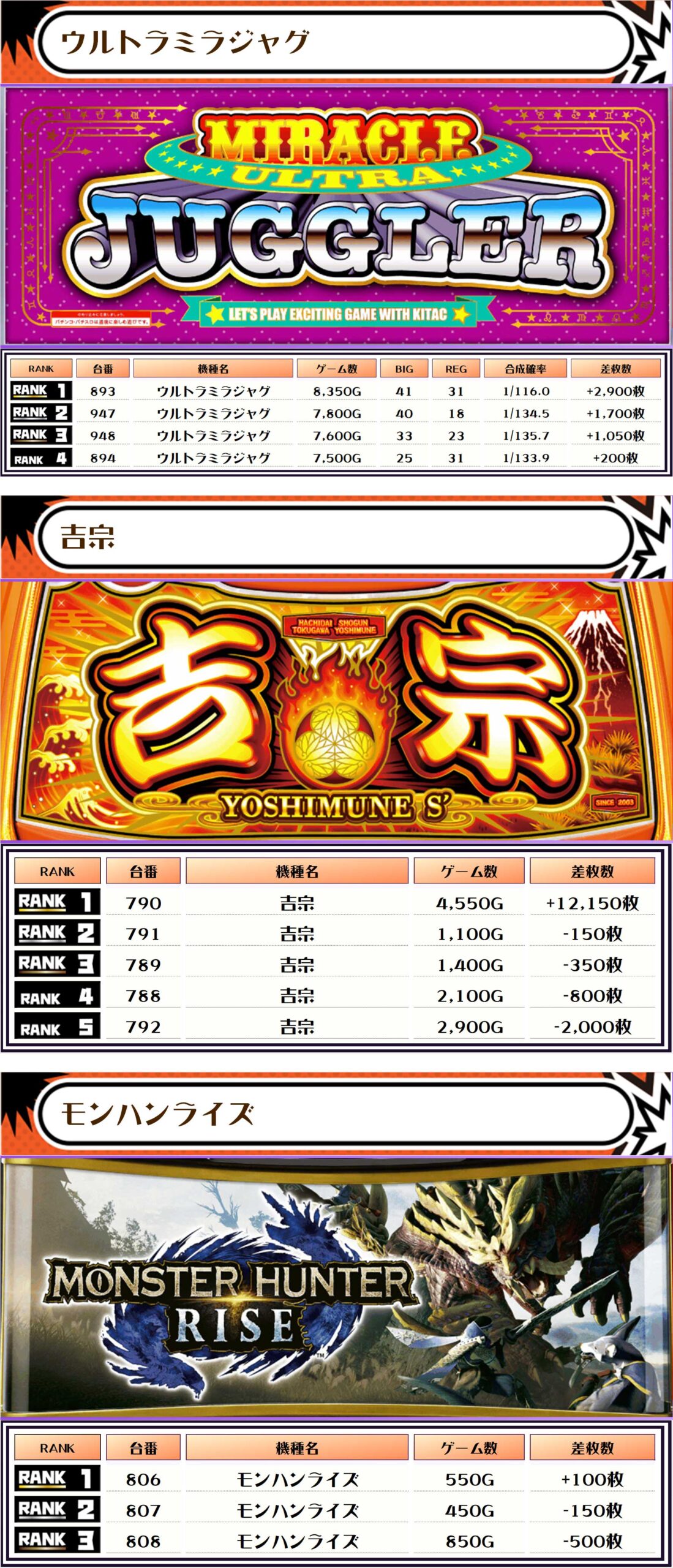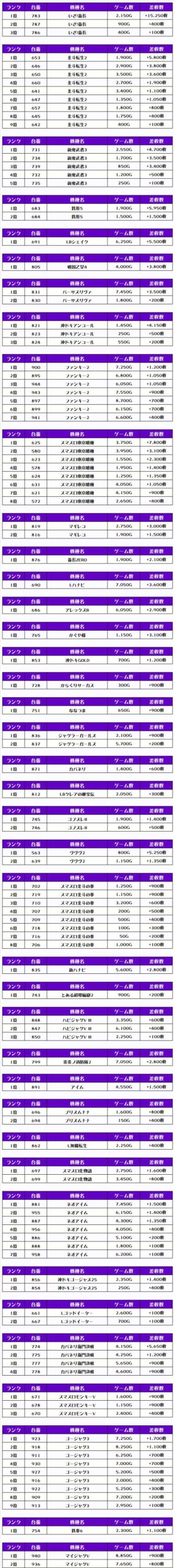 ピックアップしたのは、稼働が目立っていて優秀台が多かったと思われる機種になります👍