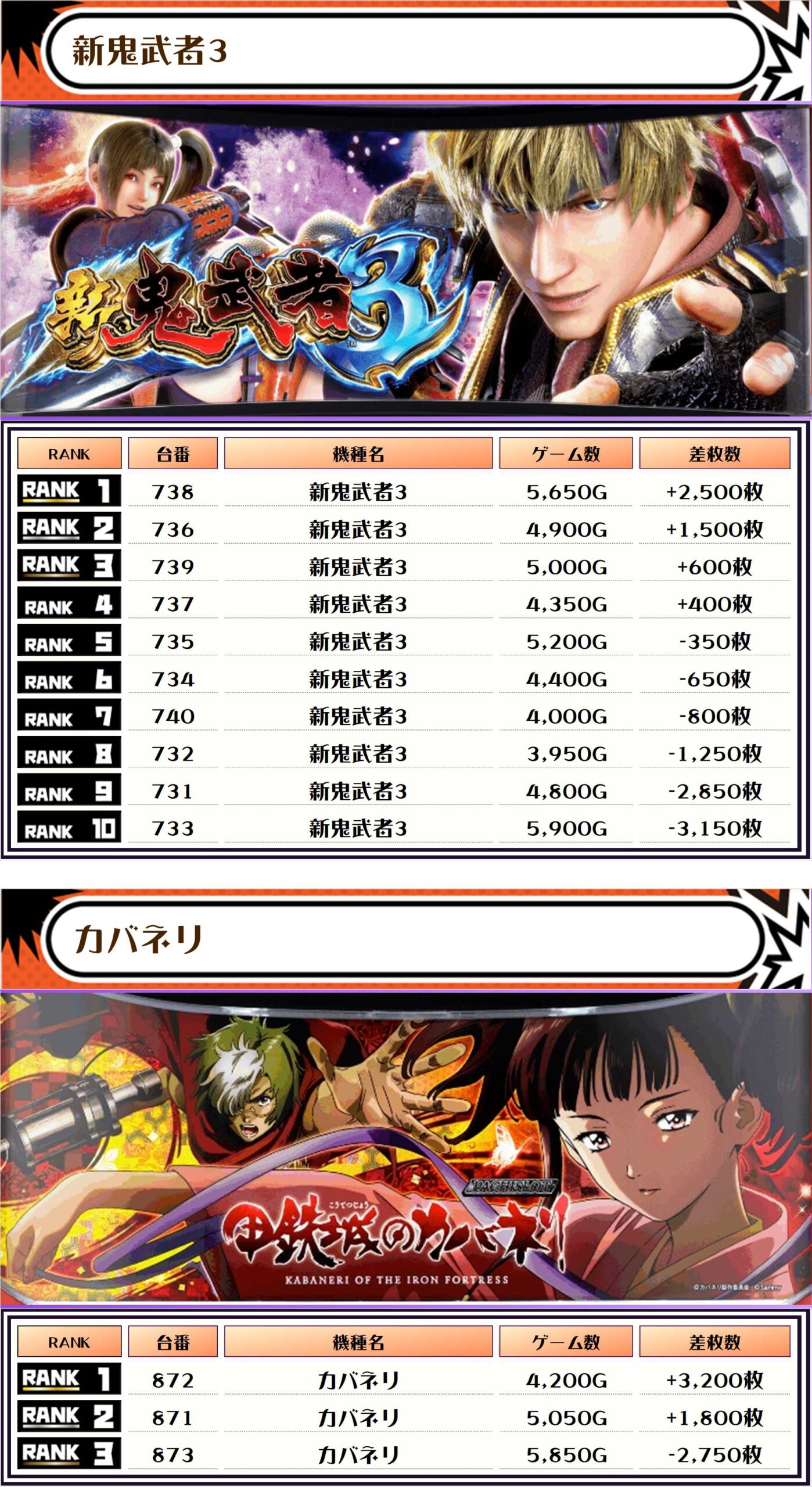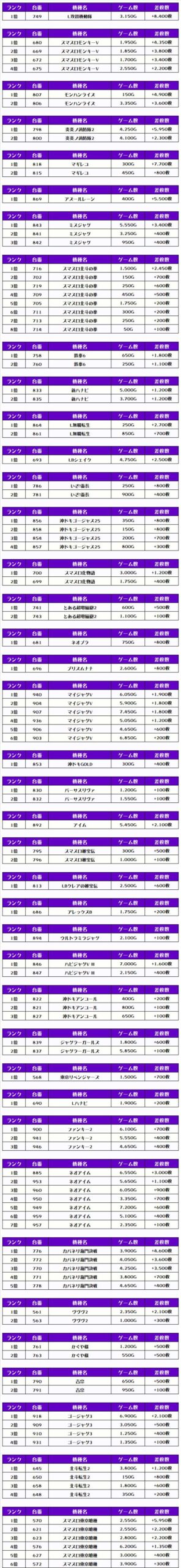 今回ピックアップしたのは明らかに稼働が高く、優秀台が多かったと思われる機種になります👍