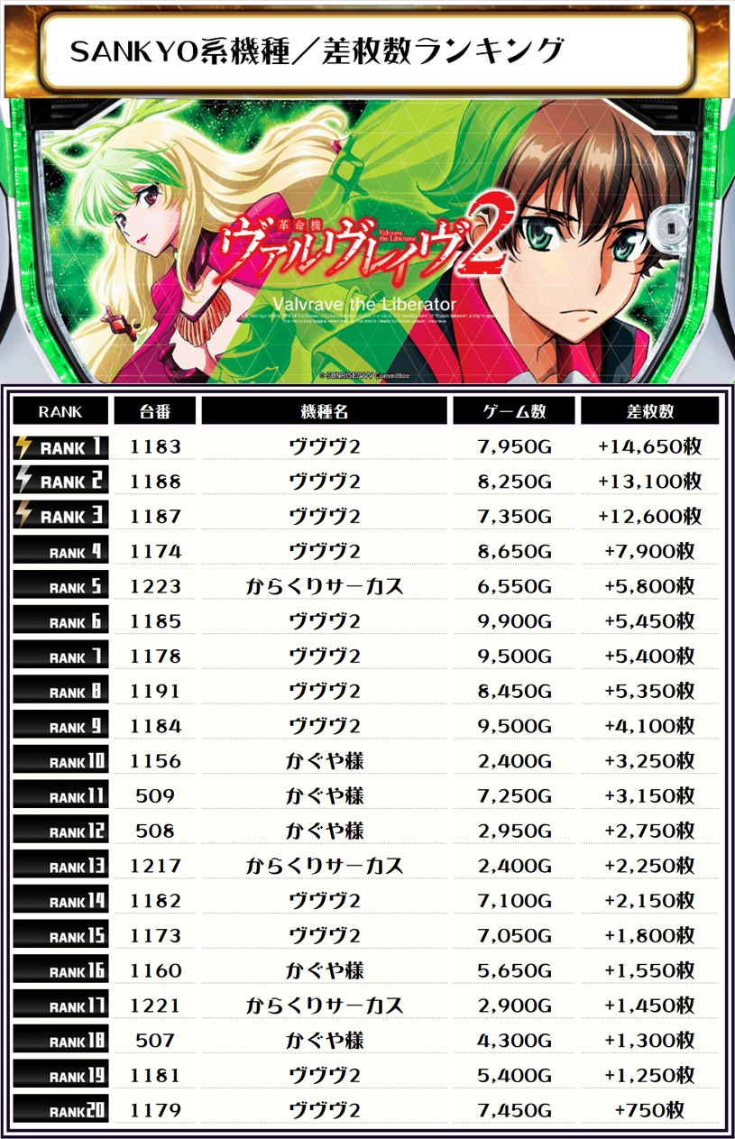 続く2位には【ヴヴヴ2・1188番台】の+13,100枚、そして3位には【ヴヴヴ2・1187番台】の+12,600枚がランクイン‼️