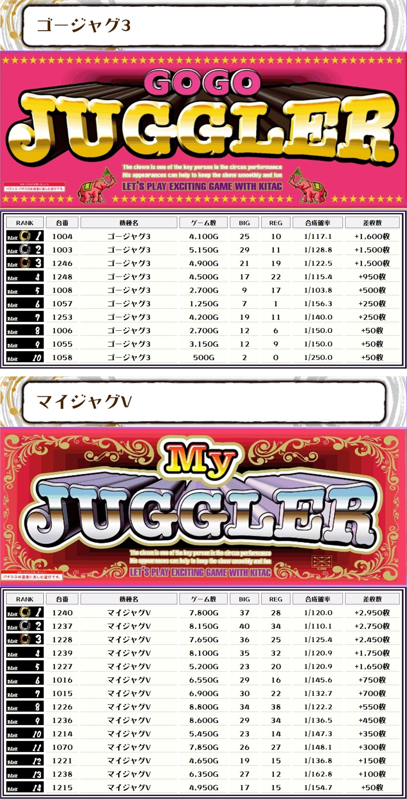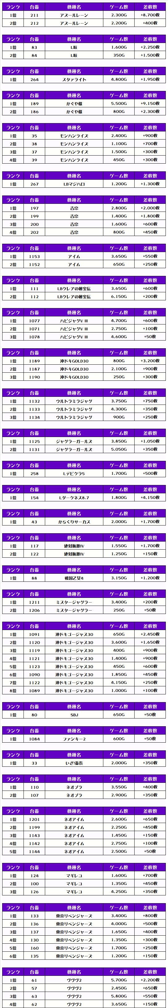 その他機種の差枚ランキングはコチラ