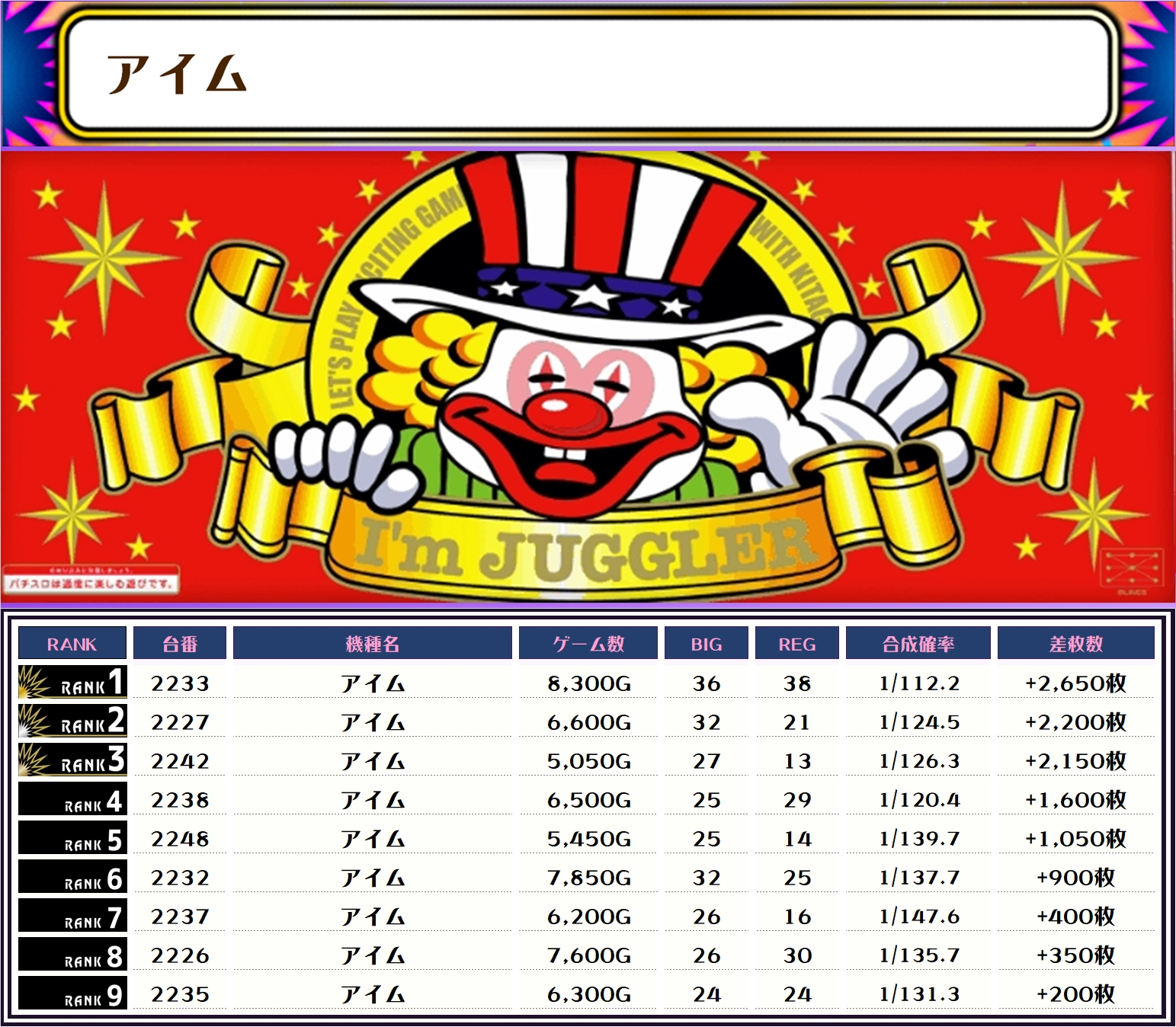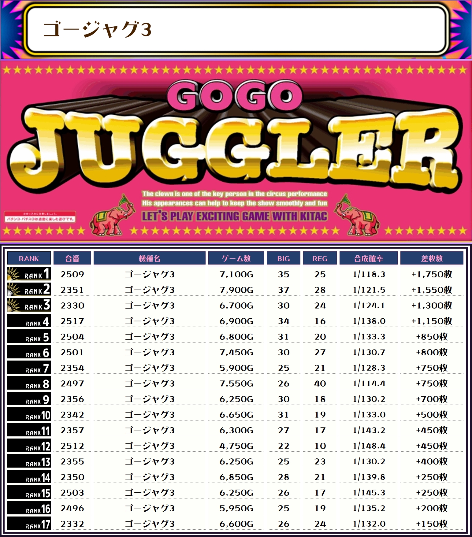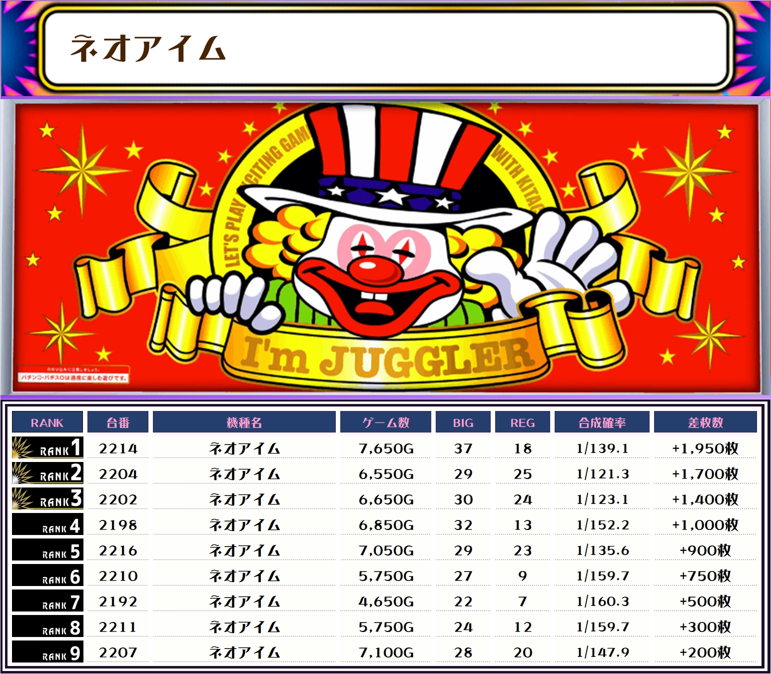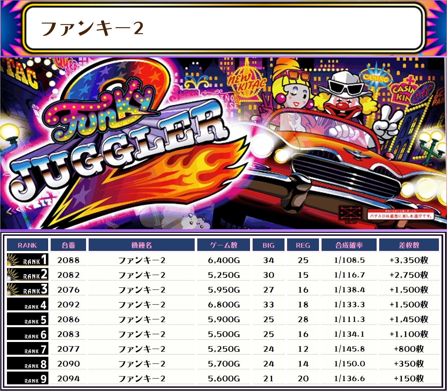 そして、この日全台を対象とした差枚ランキングがこちらになりますっ👍