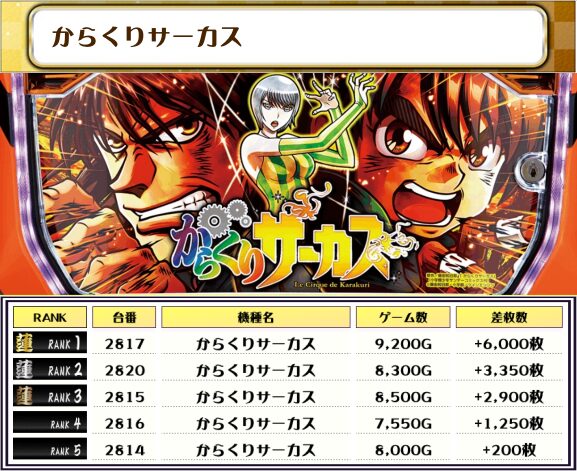 そして、この日全台を対象とした差枚ランキングがこちらになりますっ👍