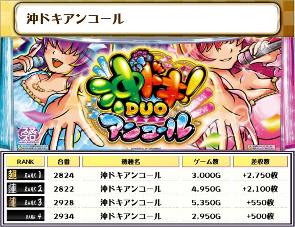 ランキングはすべて7000枚オーバー、万枚オーバー×9台も出現と前回を超える結果に🎉🎉🎉🎉🎉