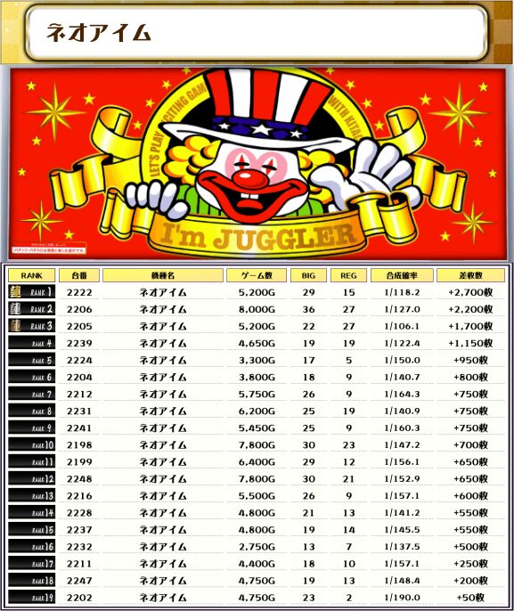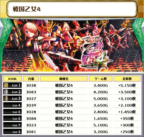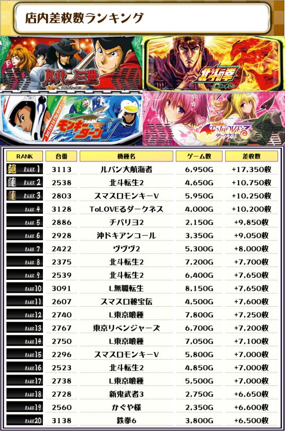 そして、この日全台を対象とした差枚ランキングがこちらになりますっ👍