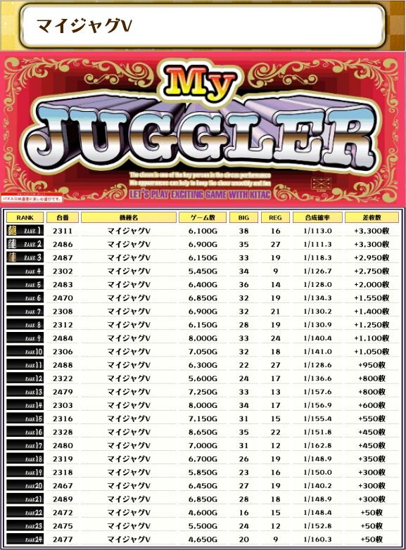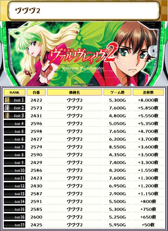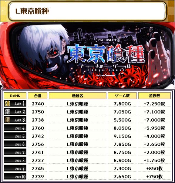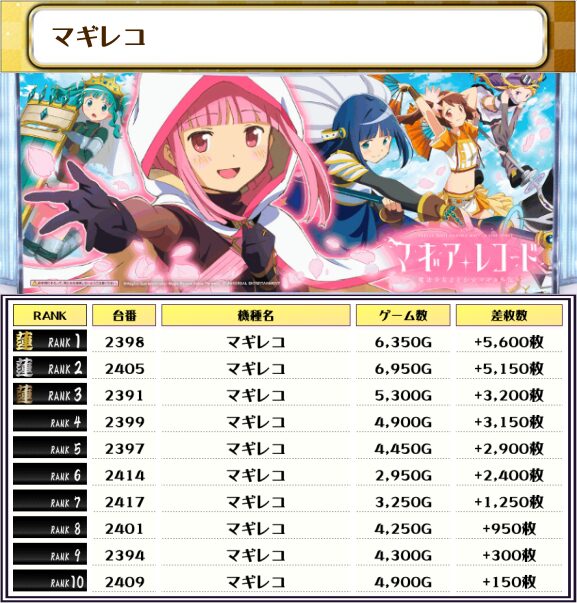 今回のランキングはすべて6000枚オーバー、万枚オーバー×4台も出現とという結果に🎉🎉🎉🎉🎉