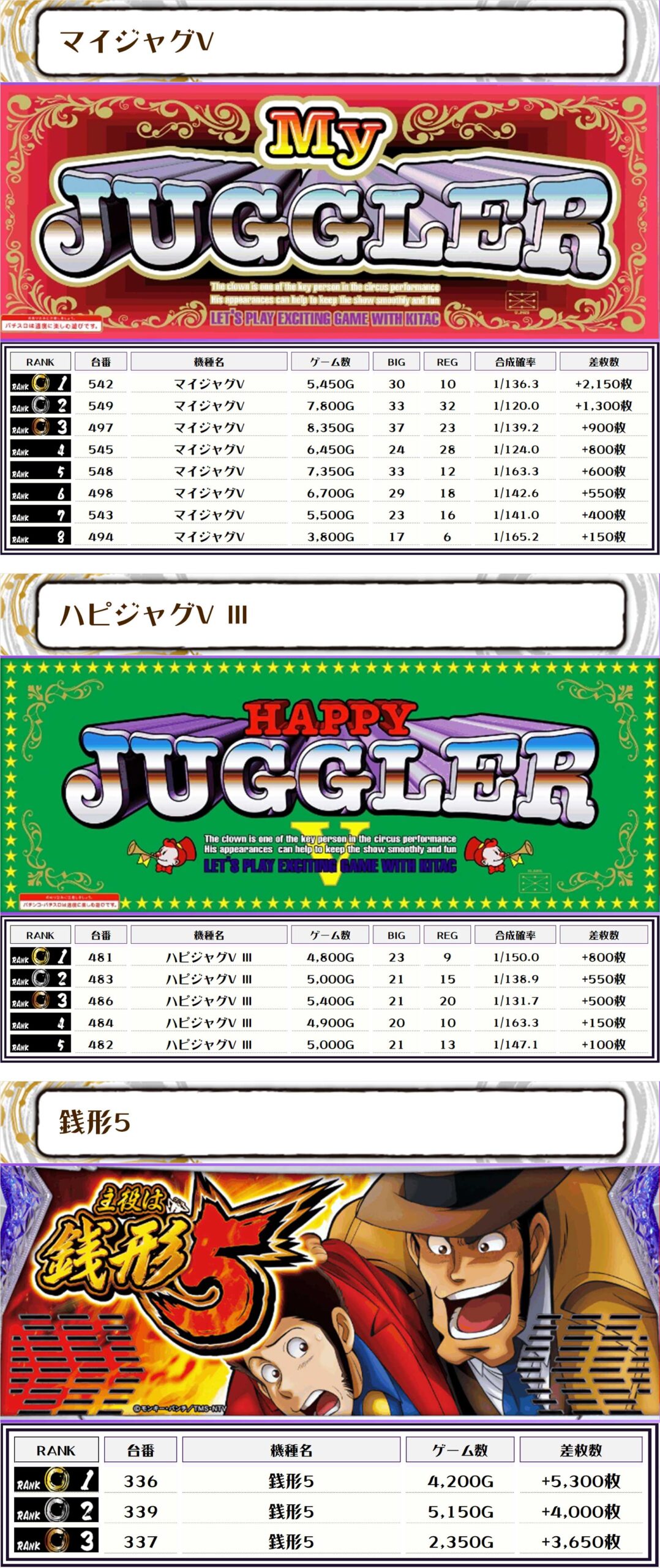 2位には【東京リベンジャーズ・514番台】の+8,050枚、そして3位には【スマスロモンキーV・438番台】の+5,850枚がランクインっ🏆🏆🏆