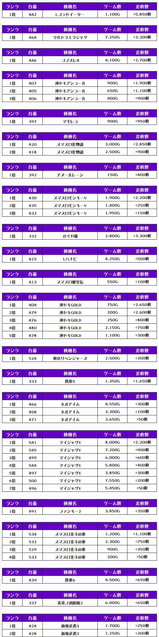 その他の機種の差枚はコチラ❗️
